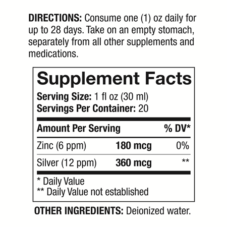 - Contains ionic Silver at 360 mcg per 1 oz. serving